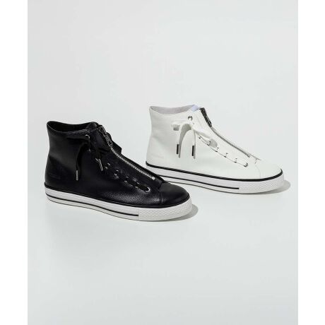 フロントに走るジップディテールとレースアップデザインがモードな雰囲気を演出。