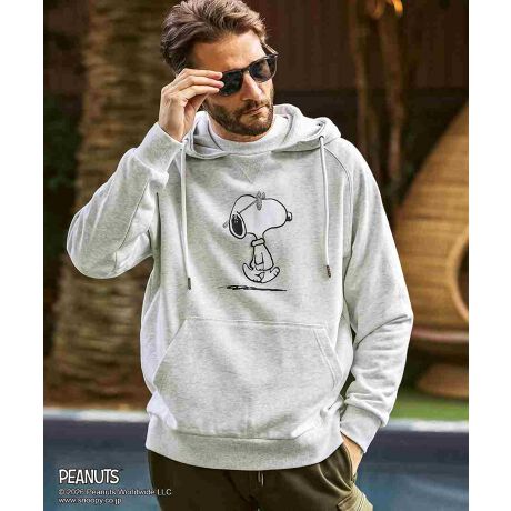 スヌーピーがサングラスをかけ、クールな大学生に変身した「JOE COOL」のグラフィックをフロントに配置したスウェットパーカー。