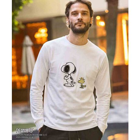 スヌーピーとウッドストックの仲睦まじいグラフィックをフロントに配置した長袖カットソー。