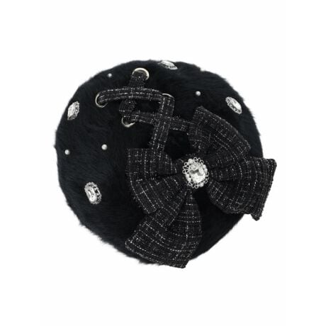 ふわふわのシャギー素材にビジューとパール風の輝きを散りばめた、存在感たっぷりのベレー帽。
