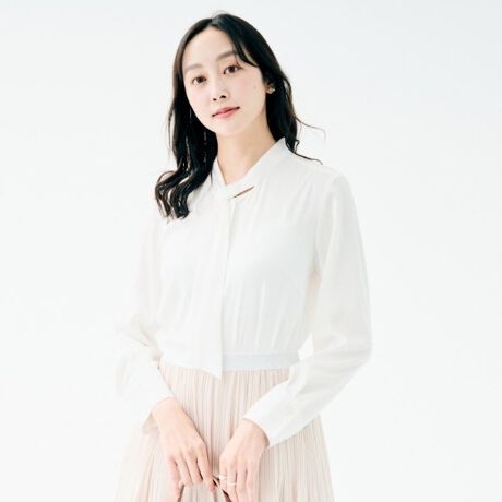 ボウタイを通すだけで決まるブラウスは、一枚着としてももちろん、スーツのインナーにおすすめです。