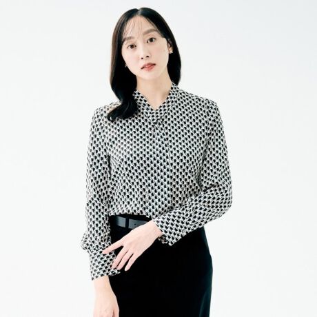ボウタイを通すだけで決まるブラウスは、一枚着としてももちろん、スーツのインナーにおすすめです。