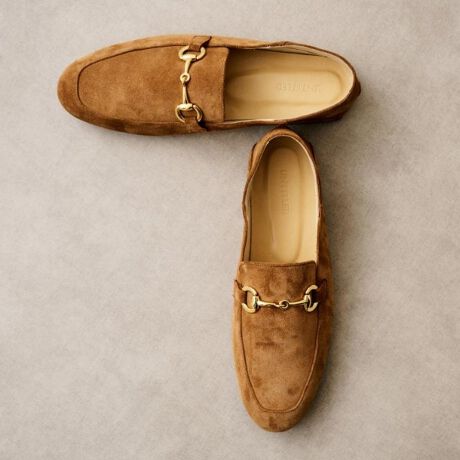 本革スエードのやわらかな表情が魅力のビットローファー。