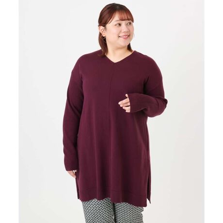 腰下までしっかり着丈のあるチュニックニット。