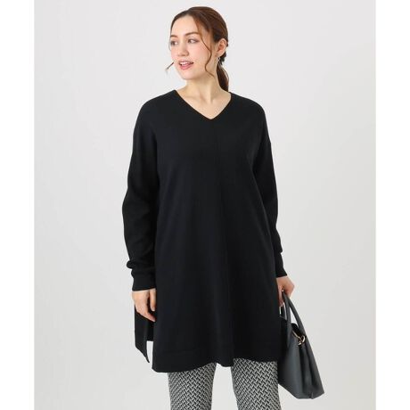 腰下までしっかり着丈のあるチュニックニット。