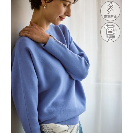 ・袖のパールが映えるので、アクセサリーなしでも華やかに。