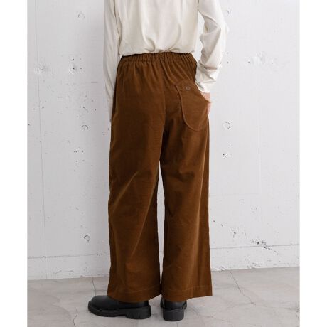 POU DOU DOU定番人気のとりポケットパンツにコーデュロイ素材が登場です。畝が細く薄手で柔らかいシャツコール素材を使用しています。細やかな起毛感があるので寒い春先まで着用していただけます。セミワイドのストレートシルエットで、着回しの利くデザイン。ウエストはゴム仕様、内紐でサイズ感の調節ができます。さりげないとり型のポケットがポイント。両サイドにポケット付き。