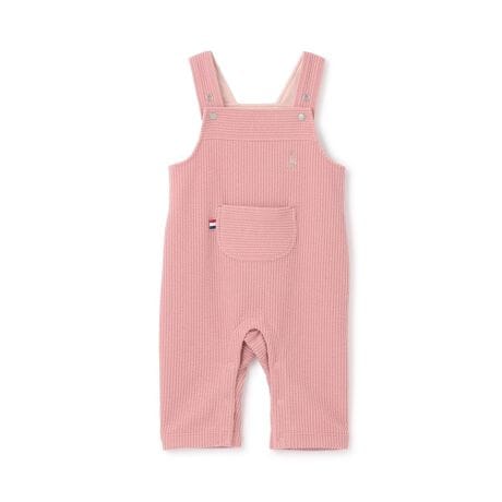 太めのうねがかわいいニットコール生地で仕立てたサロペットです。