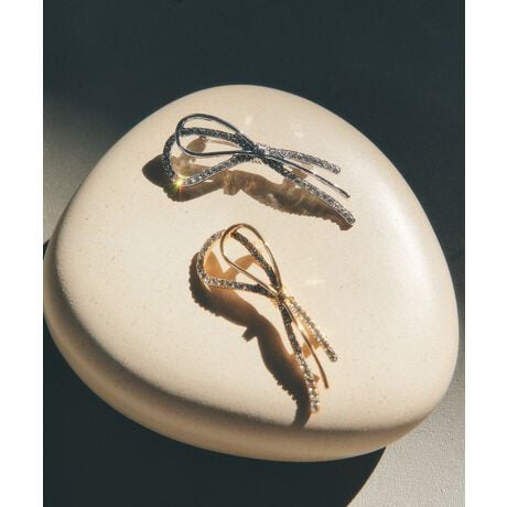 結び目をイメージしたリボンシルエットが、上品な存在感を演出するブローチ。