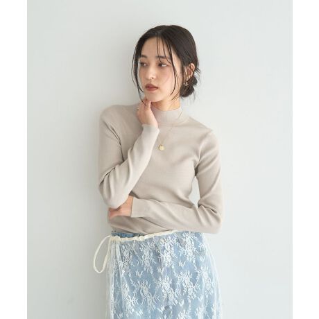 ハイゲージのリブ編み仕様でカジュアルからきれいめまであらゆるスタイリングと好相性です。