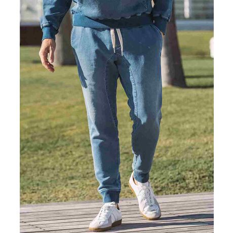 デニム見えするストレッチジョグデニム素材で、軽さと快適性を実現したジョガーパンツ。
