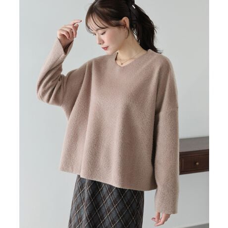 Vネックデザインが程よい抜け感を演出し、首元やデコルテを美しく演出します。