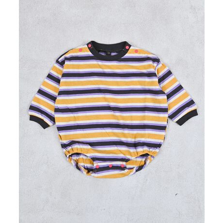 マルチボーダーの配色が映える長袖ボディシャツ。