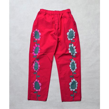 目を引くプリントがポイントのツイルパンツ。
