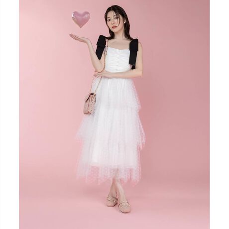 <26春夏新作>【Heart Collection】ハートチュールリボンティアードワンピース