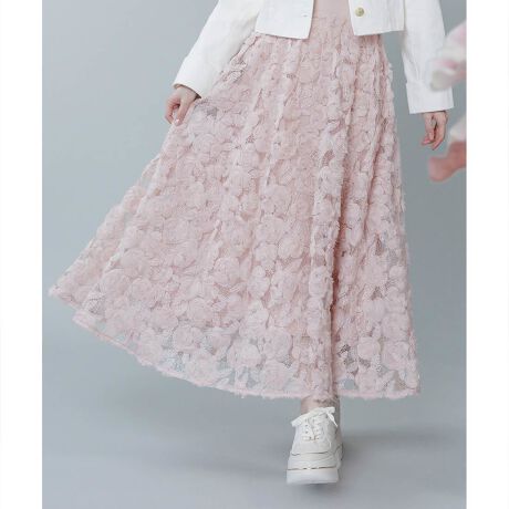 立体的なフラワーモチーフ生地を贅沢に使用したフレアスカート。