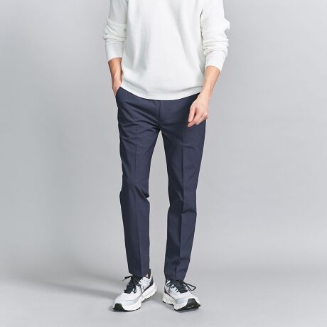 浅めの股上でノータックのコンパクトな腰回りと、センタープレスを効かせたシャープなテーパードラインが特徴です。