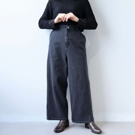 楽なのに脚長見え。裾スリットで【抜け感】をプラスする大人のデニムワイドパンツ