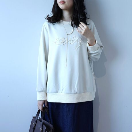 胸元には、カーリーな筆記体で施されたコード刺しゅうがアクセント。