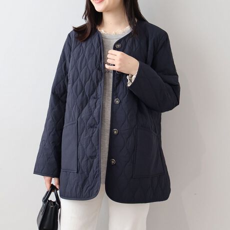 中綿には薄手で柔らかなタイプを選んでいるため、キルティングアウター特有の着膨れ感がなく、すっきりと着こなせます。