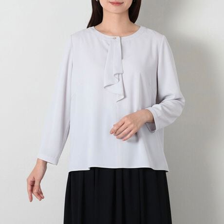 ネックラインはきちんと感とデコルテをキレイに見せるスッキリとした切替えラウンドネックです。