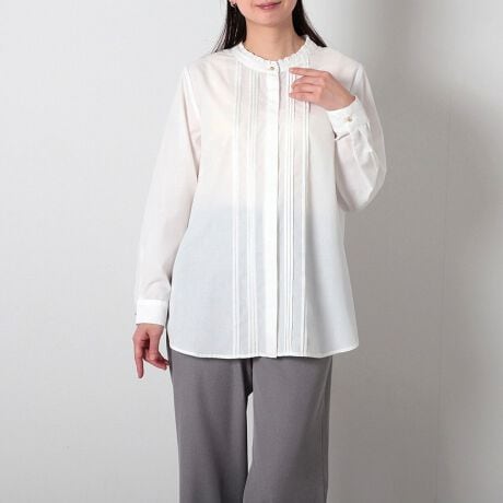 マルイウェブチャネル   /   フルールbyミントブリーズ   /   トップス   /   シャツ   /   【大きいサイズ】クリアローンフロントピンタックバンドカラーシャツ