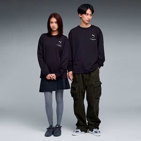 PUMA x モンスターハンター LS TEEは、人気ゲーム『モンスターハンター』とのコラボレーションによるスペシャルアイテム。背中に大胆なモンスターグラフィックをあしらい、ゲームの世界観をスタイリッシュに表現。プレーティングジャージ素材を使用し、コットンの柔らかさとリサイクルポリエステルの機能性を両立。衿と袖口にはリブを採用し、快適なフィット感を提供。タウンユースからカジュアルシーンまで幅広く活躍する一着です。MONSTER HUNTER コレクション人気タイトルMONSTER HUNTER WILDSとのコラボレーション。今回のコラボレーションでもWILDSから登場するモンスターを使用したものや今回のコレクションのために特別に作成したアイルーやセクレトのグラフィックが特徴的なコレクション。