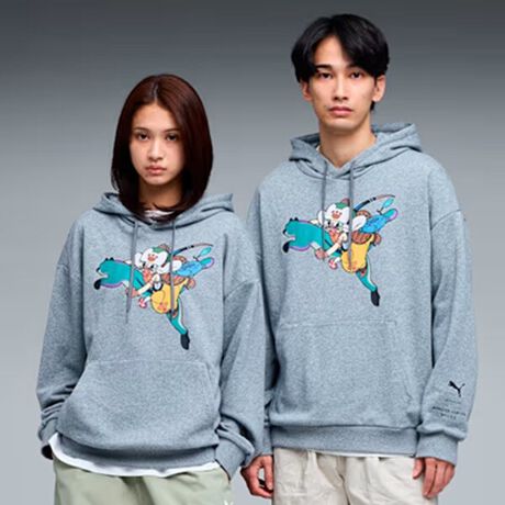PUMA x モンスターハンター SWEAT HOODIE FPは、人気ゲーム『モンスターハンター』とのコラボレーションによるスペシャルアイテム。フロントに大胆なモンスターグラフィックを配置し、ゲームの世界観をスタイリッシュに表現。裏毛仕様の本体は、コットンとリサイクルポリエステルを使用し、柔らかく快適な着心地と保温性を両立。袖口と裾には伸縮性のあるリブを採用し、動きやすさも確保。タウンユースからリラックスシーンまで幅広く活躍する一着です。MONSTER HUNTER コレクション人気タイトルMONSTER HUNTER WILDSとのコラボレーション。今回のコラボレーションでもWILDSから登場するモンスターを使用したものや今回のコレクションのために特別に作成したアイルーやセクレトのグラフィックが特徴的なコレクション。
