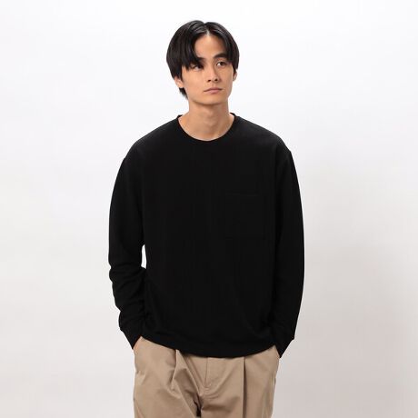 特長的な生地を活かしたシンプルなクルーネックTシャツ。