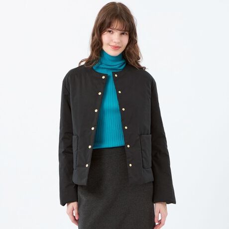 軽く膨らみがあり、保温性の高い中わた『Heavenly LightCloud』を使用することによって、ふくらみ感はありながらもカーディガンのように軽く羽織れるアイテムに仕上げました。