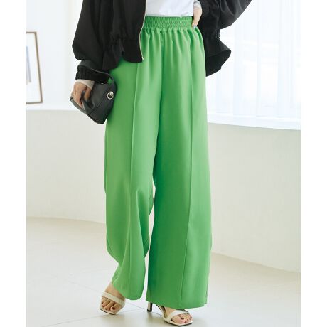 ウエスト総ゴム仕様でリラックスした穿き心地ながら、センターピンタック入りで、きちんと見えも叶います。
