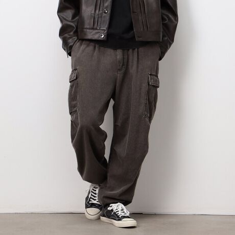 人気のオーバーダイのデニムでPURPLE&YELLOW定番のワイドカーゴパンツを作りました。