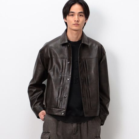 ムラ感のある合成皮革を使用した、表情豊かなGジャンです。