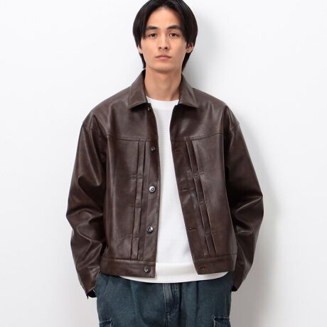 ムラ感のある合成皮革を使用した、表情豊かなGジャンです。