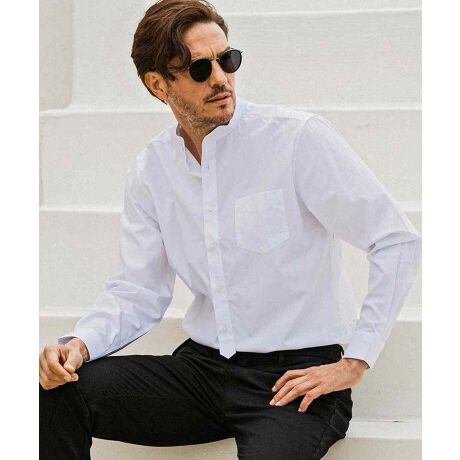 上品さと抜け感を兼ね備えるバンドカラーシャツ。