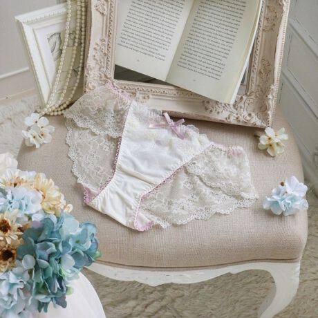 後身生地は総レースになっており、伸縮性のあるレースが肌に心地よくフィットします。足口にはゴムを使っていないので食い込まず、少しゆとりをもった履き心地です。ボトムスへもショーツラインが響きません。通気性がよく、快適にご着用いただけます。甘すぎず、大胆過ぎない特別感あふれるデザインが、ラグジュアリーな大人の雰囲気を演出します。