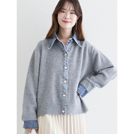 [型番:25560772659]レイヤード風のデザインがお洒落な着こなしを演出するトップス。フロントには金釦を施しているため、さりげなくクラシカルなムードをプラスします。温かみのあるニット素材が着心地の良さをプラス。パンツやスカートなど、様々なボトムスと相性の良いアイテムです。モデル(グレー着用)身長:160cm Mサイズ着用