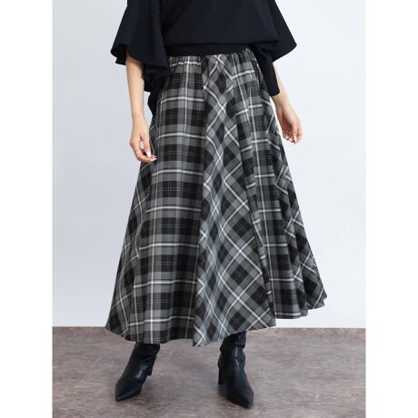 トップスにはシンプルなニットやシャツを合わせると、スカートの柄とシルエットが際立ち、上品で季節感のあるスタイリングが完成します。