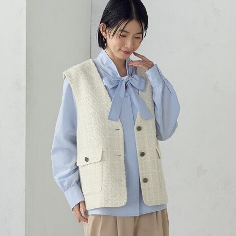 表情豊かなファンシーツイードを贅沢に使用したジレです。