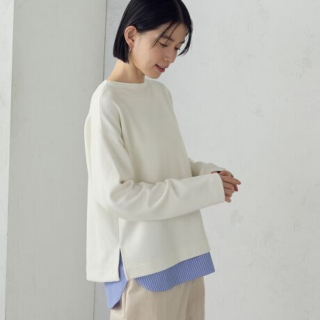 透け感:(天竺部分)ややあり (布帛部分)ほぼなし