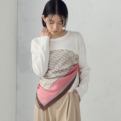 約90cm×90cmサイズのマルチに使える大判正方形モノグラムスカーフ。