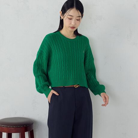メンズ&キッズと同じケーブル編みの柄を使用した、クルーネックニットです。