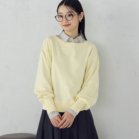 1枚でオフショルにして着ても、インナーにTシャツやシャツをレイヤードしても◎