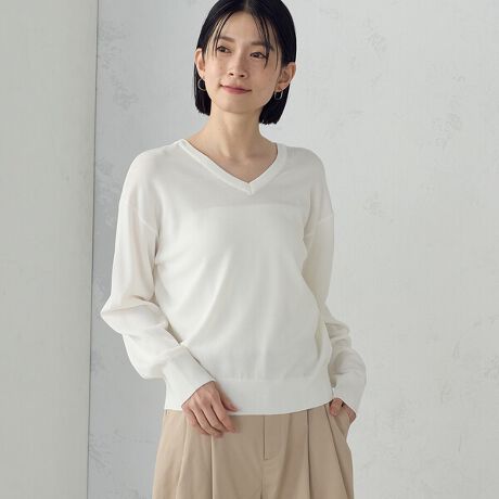 クルーネックとVネック両方着られて、着回し力がアップ!