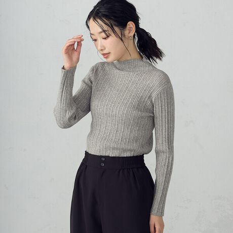 表情のあるランダムピッチのリブがアクセントになるランダムリブニット。