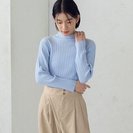 表情のあるランダムピッチのリブがアクセントになるランダムリブニット。