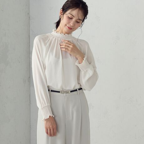 ポリエステルジョーゼット シャーリングブラウス