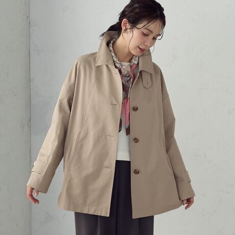 素材のハリ感を活かしたテントラインシルエットのミドル丈コートです。