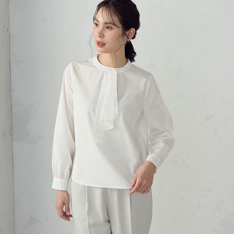 プルオーバータイプのボウタイ風ブラウス。