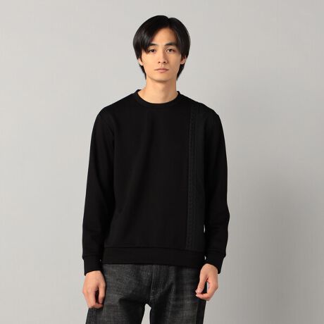 ポンチ素材とケーブル柄を切り替えたデザインのプルオーバーです。